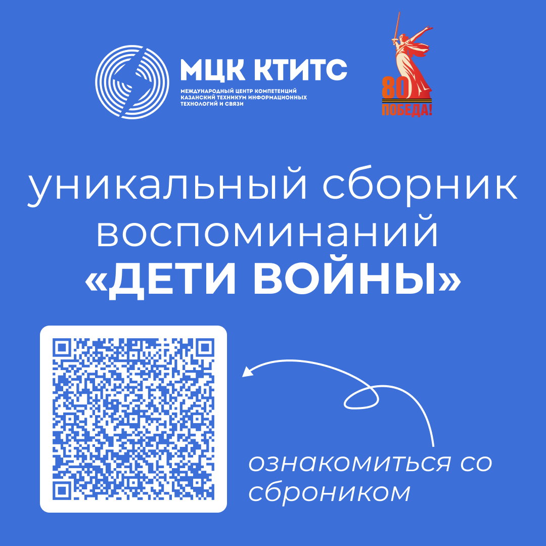Совет ветеранов МЦК-КТИТС совместно с учебным центром техникума, под руководством заместителя директора по учебно-воспитательной работе Халиковой Арины Айратовны, подготовил к публикации уникальный сборник воспоминаний «Дети войны» mck-ktits.ru/wp-content…