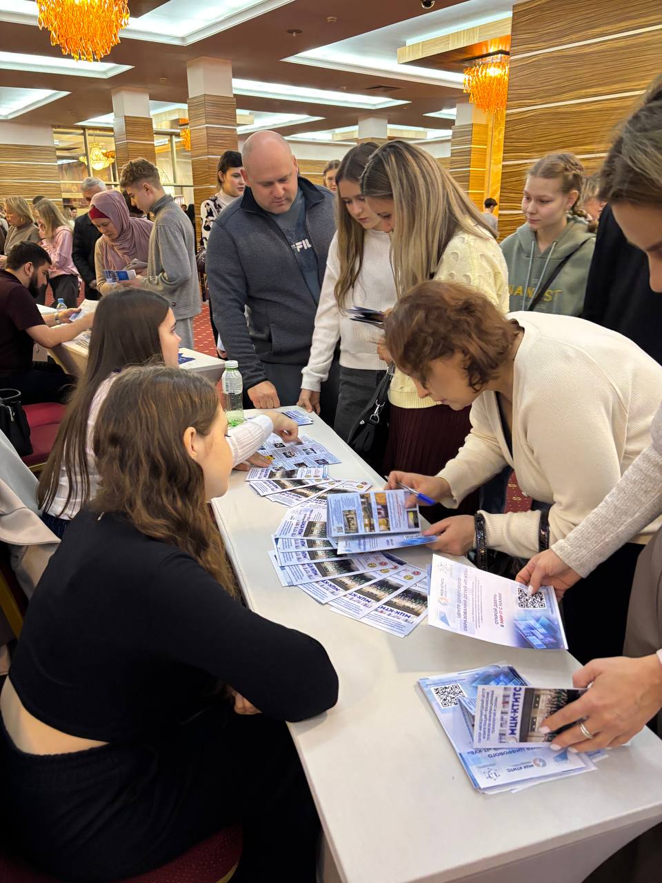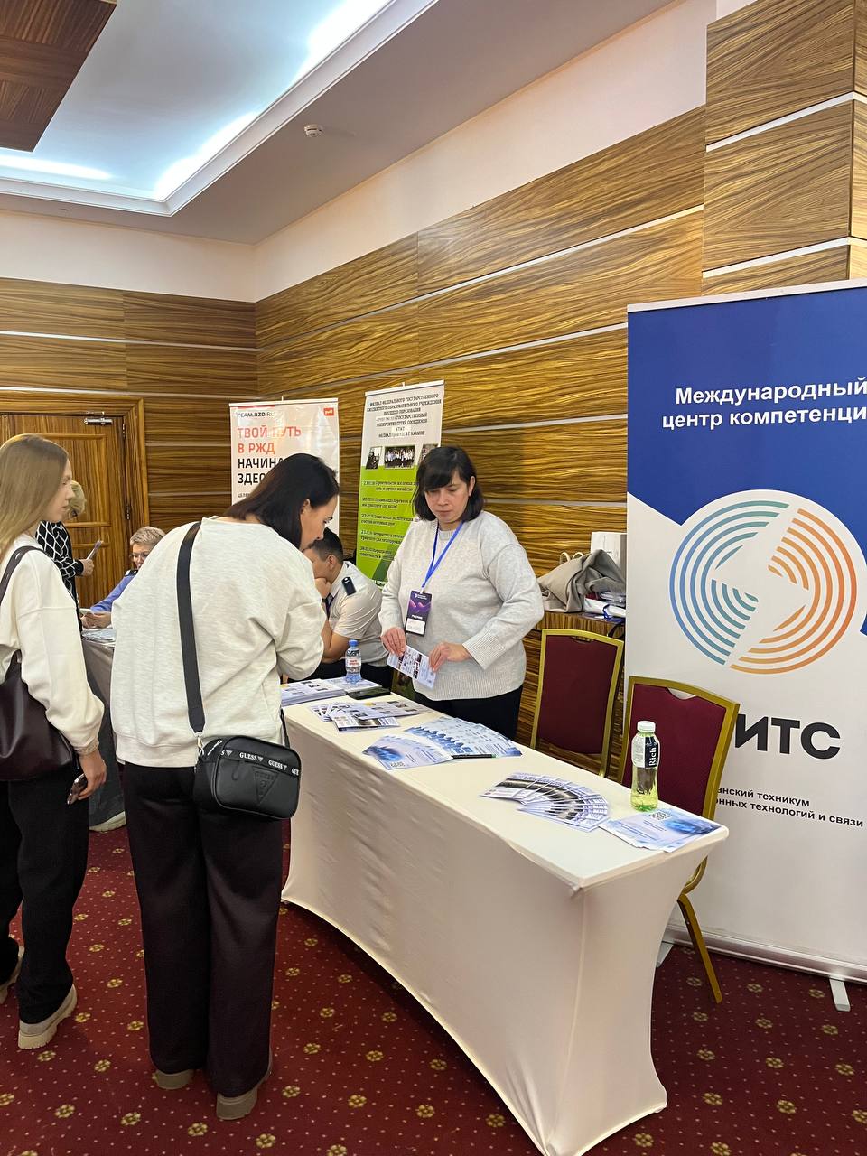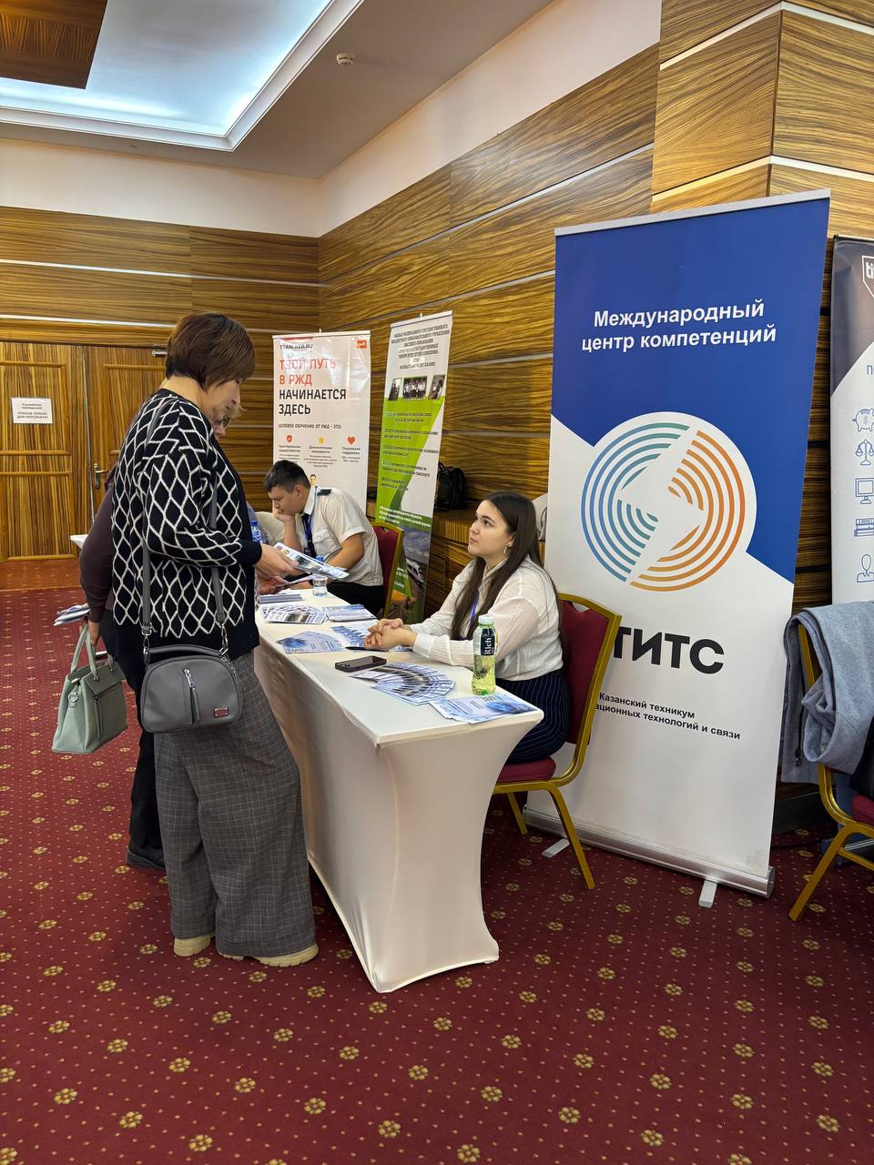 Наш стенд стал центром притяжения для абитуриентов и родителей — гости активно интересовались направлениями подготовки, правилами приёма и перспективами, которые открывает обучение в техникуме.