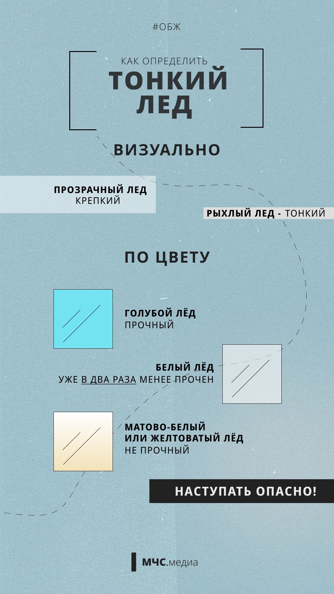 😊 На изображениях вы найдете информацию о том, какой лёд считается безопасным, как его распознать визуально и по внешним факторам, а также где наиболее вероятно встретить тонкий лёд.