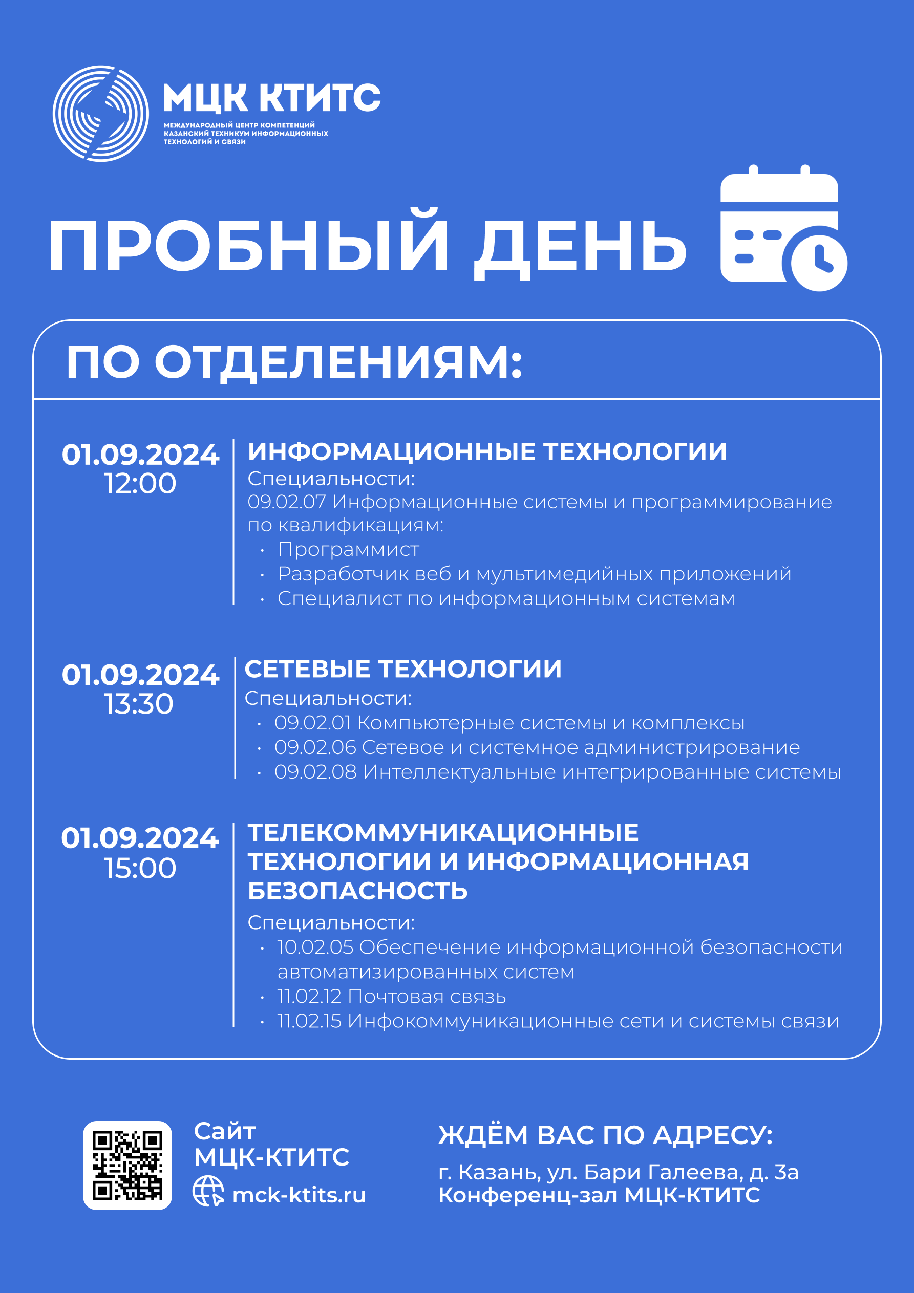 Уважаемые абитуриенты! Публикуем распорядок пробного дня для студентов первого курса.