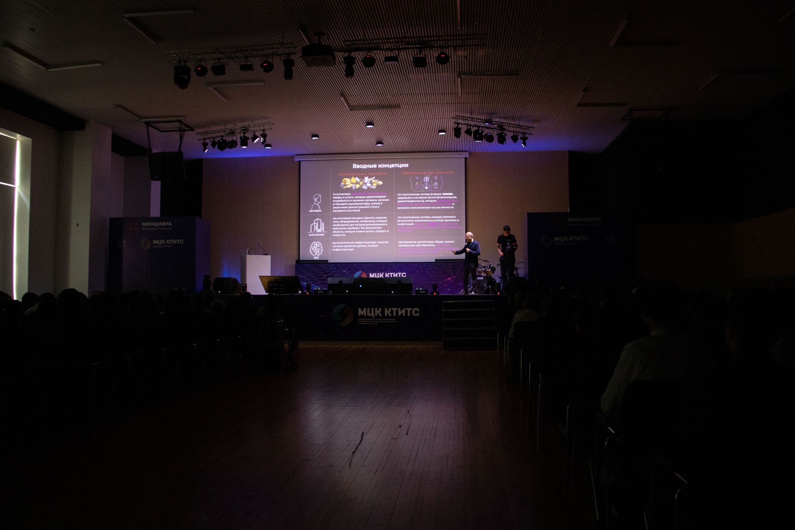 В рамках лекции были рассмотрены фундаментальные концепции: эволюция роли знаний в современном мире, модели их приобретения и систематизации, а также архитектура и практическое применение ИИ. Айрат Рафкатович поделился со слушателями научным видением проблемы, подкрепленным опытом реализации проектов в области машинного обучения и больших языковых моделей в «Таттелеком».