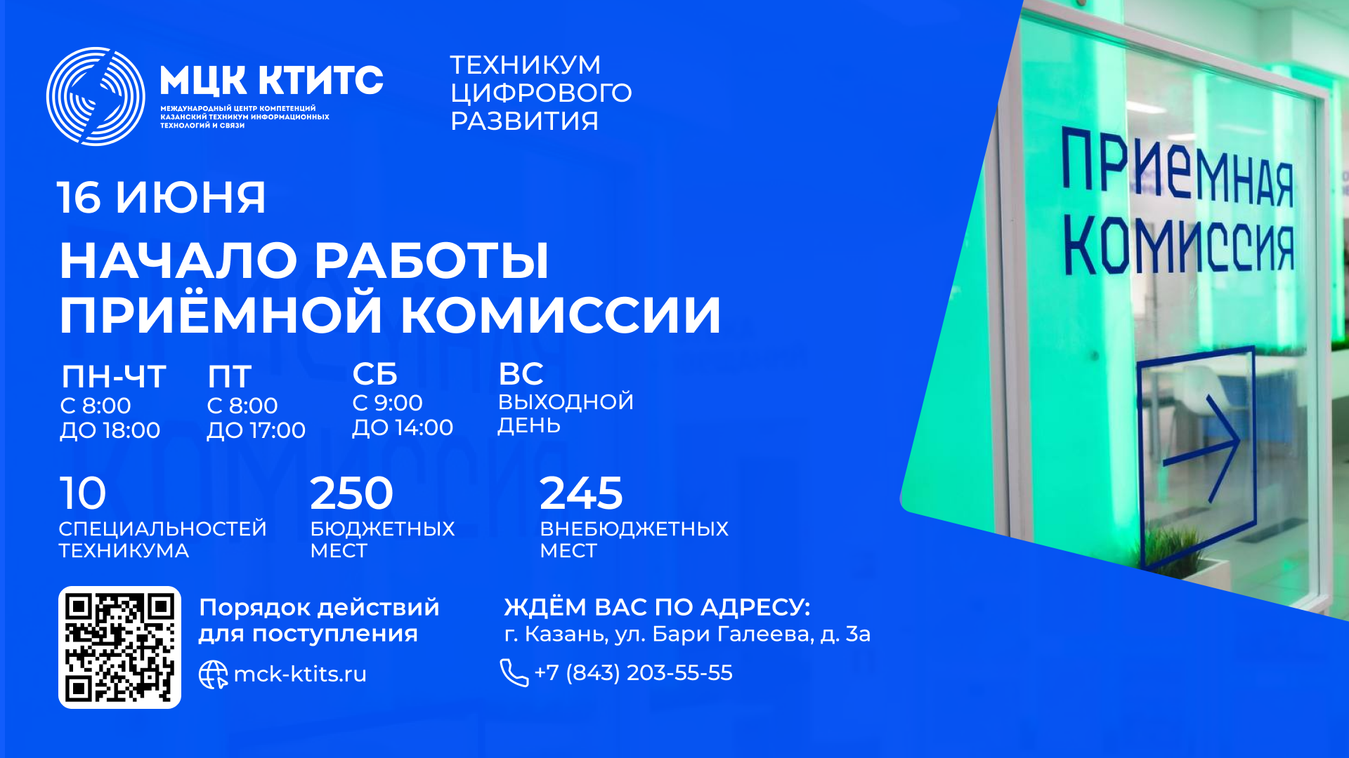 ➡️ С 16 июня 2025 года начинает работать Приёмная комиссия МЦК-КТИТС.